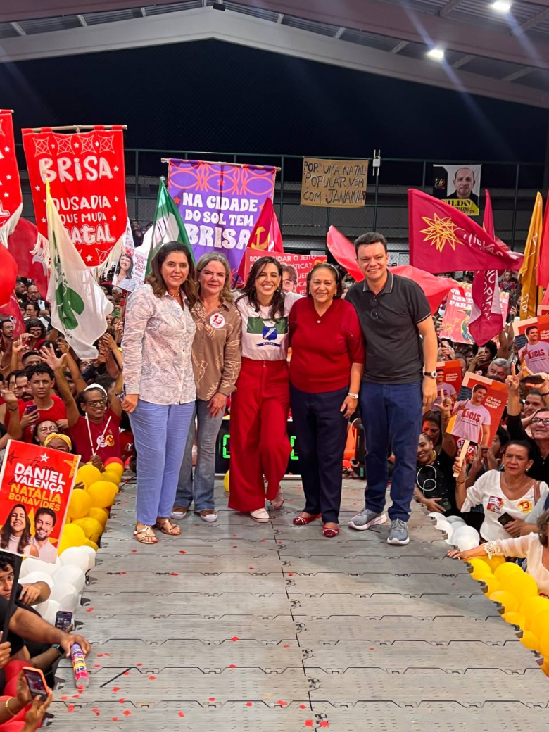 Na noite de sexta-feira (2), a presidenta Nacional do PT, Gleisi Hoffmann, a secretária de Finanças e Planejamento, Gleide Andrade, o líder do PT na Câmara, Odair Cunha, e a governadora do Rio Grande do Norte, Fátima Bezerra, participaram da Convenção da Mudança, em Natal (RN). O evento ocorreu no Instituto Estadual de Educação Profissional, Tecnologia e Inovação do RN (IERN) e oficializou Natália Bonavides como candidata à Prefeitura do município, pela Federação Brasil da Esperança (PT, PCdoB e PV). Milklei Leite (PV) será seu vice.
