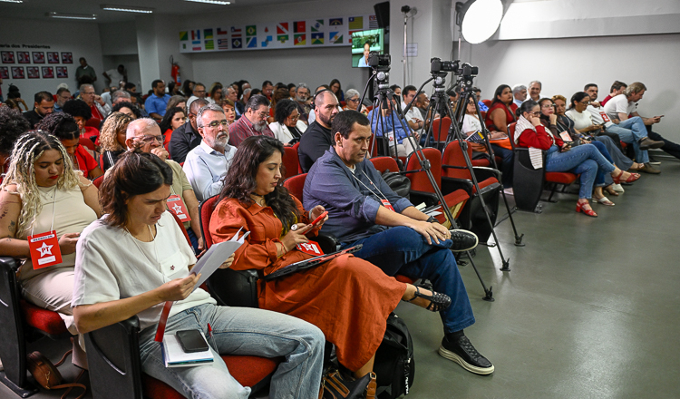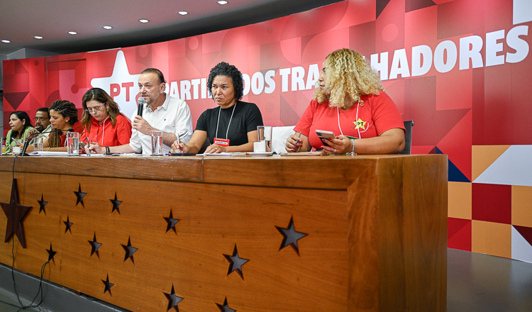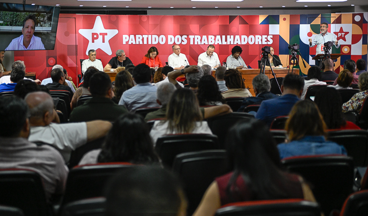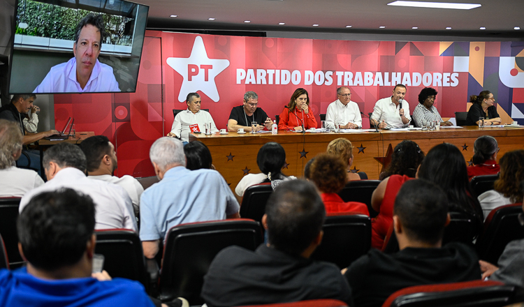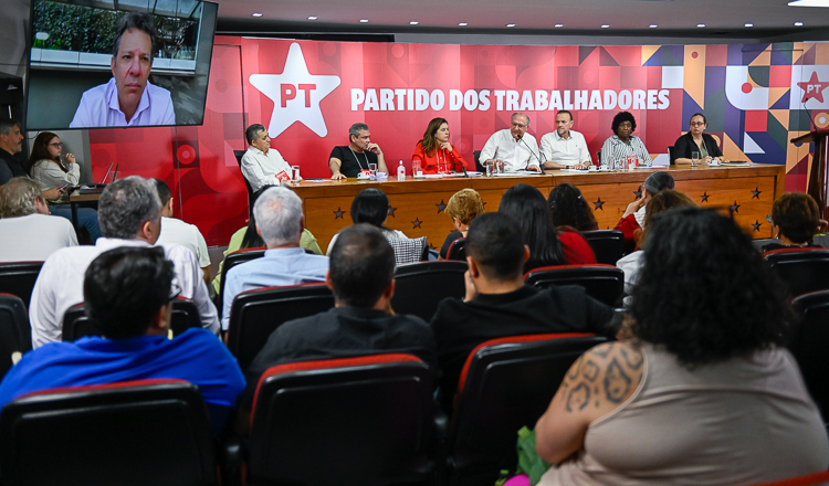 Ambos participaram de um debate sobre a conjuntura nacional e internacional na sede do PT, neste sábado (23), em Brasília, durante reunião do Diretório Nacional