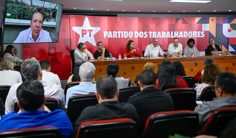 O ministro da Fazenda, Fernando Haddad, e o vice-presidente e ministro do Desenvolvimento, Indústria, Comércio e Serviços (Mdic), Geraldo Alckmin, reforçaram a importância de ações para proteger a economia brasileira e defender a soberania nacional frente aos ataques do governo de Donald Trump. Haddad e Alckmin debateram a conjuntura nacional e internacional durante reunião do Diretório Nacional do PT, na sede do partido, em Brasília, neste sábado (23). O debate foi conduzido pelo presidente nacional do PT, Edinho Silva.