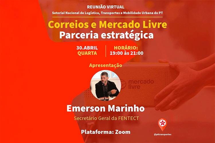 O Setorial Nacional de Logística, Transportes e Mobilidade Urbana do Partido dos Trabalhadores e das Trabalhadoras (PT) promove, nesta quarta-feira, 30 de abril, uma nova reunião virtual para discutir a parceria estratégica entre os Correios e o Mercado Livre. O encontro será realizado das 19h às 21h, pela plataforma Zoom.