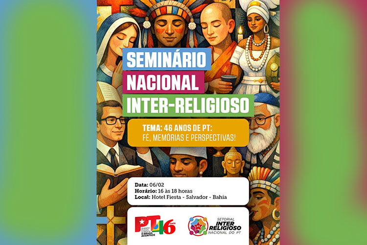No marco dos 46 anos do Partido dos Trabalhadores, o Setorial Inter-religioso do PT propõe um espaço qualificado de diálogo por meio do Seminário Nacional “46 anos do PT: Fé, Memórias e Perspectivas”, que integra a programação comemorativa do partido em Salvador. Em um ano decisivo para o Brasil, o seminário se apresenta como um momento estratégico de reflexão sobre a relação entre fé, política e democracia, reafirmando o compromisso histórico do PT com a diversidade religiosa, a justiça social e a defesa da vida.