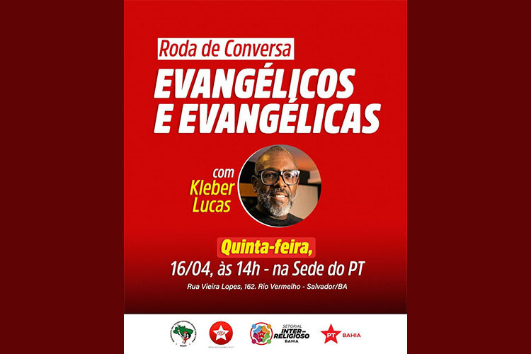 O Setorial Inter-religioso, o Núcleo de Evangélicos e Evangélicas do Partido dos Trabalhadores e o MST promovem, nesta semana, uma importante roda de conversa com o cantor, compositor, produtor cultural e pastor Kleber Lucas, na sede estadual do PT na Bahia, em Salvador.