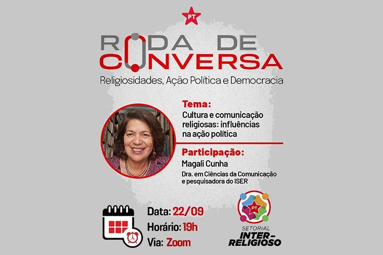 O Partido dos Trabalhadores, por meio do Setorial Inter-religioso, promove nesta segunda-feira (22/09), às 19h, a segunda etapa da Roda de Conversa: Religiosidades, Ação Política e Democracia.