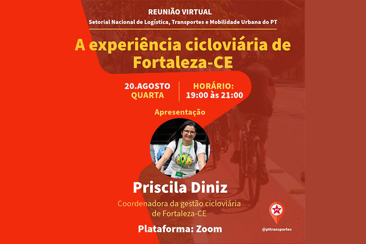 Reunião virtual terá a participação de Priscila Diniz, coordenadora de gestão cicloviária da AMC (Autarquia Municipal de Trânsito e Cidadania de Fortaleza)