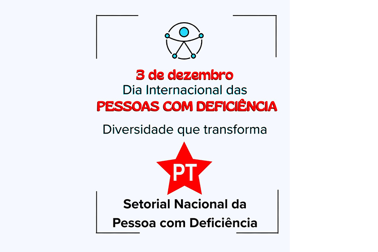 Toda a composição enfatiza a data comemorativa e a representação do setor de pessoas com deficiência do partido.