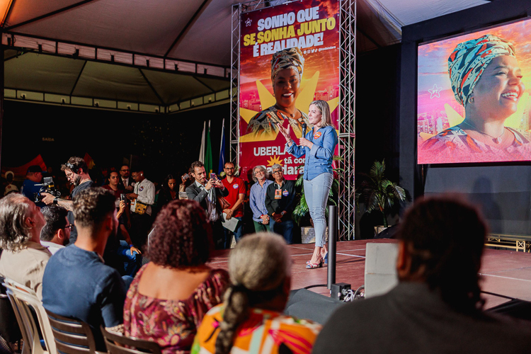 Ao falar da força da união da Federação Brasil da Esperança (PT, PcdoB e PV) com a Federação Rede e PSol em Uberlândia, Gleisi expressou sua alegria em ver uma mulher jovem, negra e ex-cotista, já em segundo lugar nas pesquisas.