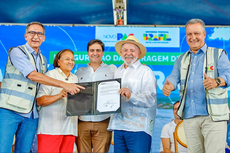 “Em 2023, o senhor criou o Novo PAC, e dentro do Novo PAC, o senhor garantiu um eixo específico de água para todos. E sob o comando do ministro Rui Costa, esse eixo tem colocado […] quase R$ 32 bilhões”, contabilizou, ao esclarecer que metade desse montante está reservado a obras de infraestrutura hídrica.