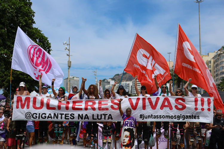 A deputada federal Benedita da Silva marcou presença no ato que reuniu milhares de pessoas no Rio de Janeiro, na praia de Copacabana. Em sua fala, ela lembrou que a luta das mulheres é por justiça, proteção e políticas públicas eficazes que garantam segurança, dignidade. “Eu quero começar dizendo que, graças a Deus, ainda estamos aqui. Porque se não tivéssemos, a situação nossa seria pior. Não pode a gente aturar e ver morrer quatro mulheres por dia no nosso estado do Rio de Janeiro. E a estatística ainda não demonstra tudo. Porque nós não sabemos também de outras mulheres que morrem também com a circunstância. E é preciso que a gente tenha coragem e determinação. Nenhuma de nós a menos”, ela destacou.