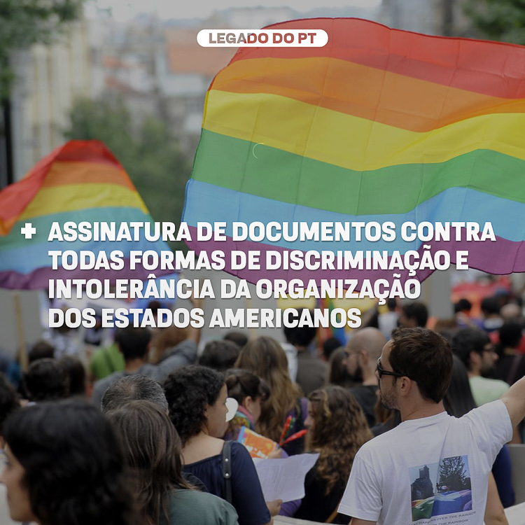 • Assinatura do governo brasileiro à Convenção contra Todas as Formas de Discriminação e Intolerância da Organização dos Estados Americanos: que define as obrigações dos países sobre temas como orientação sexual e identidade de gênero