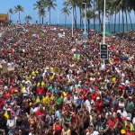 Em Salvador, também houve manifestação. Cerca de 30 mil pessoas se reuniram em frente ao Cristo da Barra, um dos principais pontos turísticos da capital baiana. Os atores Wagner Moura e Nanda Costa, a cantora Daniela Mercury e a percussionista Lan Lan subiram no trio elétrico e conduziram a multidão.
